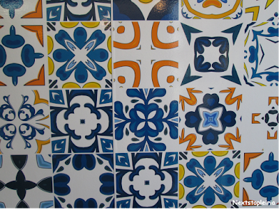A decoração é semelhante nos dois espaços, evidenciando-se os elementos de madeira e os azulejos coloridos.